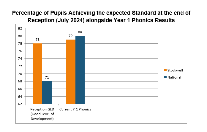 Percentage of Pupils Achieving the expected Standard at the end of Reception (July 2023) alongside end of Year 1 Phonics Results (July 2023)